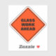 Funny classic orange diamond caution road sign warns of glass work ahead in a thick black sans serif font. Perfect a stained glass artist, glassware designer, ornament maker, or optometrist.