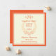 Cette élégante faire-part de graduation carré formelle comporte une bordure orange et des initiales monographiques en haut. L'embellissement de style calligraphie orné dans le centre et le filigrane de crête de laurier lui donne une touche de classe. Personnalisez ces annonces avec vos informations de graduation. Il y a également beaucoup de place à l'arrière pour plus d'informations. Cette conception fonctionne le mieux avec la carte carré, pour les coins rectangle ou ronds veuillez voir ce qui suit :