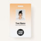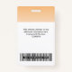 Easily personalize this Custom Corporate Employee Security Id Name Badge with Photo, Scan Bar Code or Qr code and business logo featuring a white ombre gradient on background colour. A simple business design in orange and white colours with an ombrè overlay, fully customizable in front and back sizes, sans-serif basic and modern fonts and a professional, elegant and clear look. The badges are avaiable with lanyard, metal clip or with retractable. No minimum order.