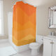 This shower curtain has a geometric design of four shades of orange running horizontally.