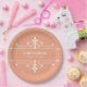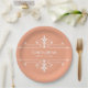 Simple and elegant Fancy Ornamental Wedding Paper Plates in coral and white featuring a sophisticated art deco style ornamental flourish border. Easy to customize, simply add your wedding details in the text fields provided. Click "Customize It" to find more personalization options.