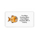 Orange fish return address labels, the background colour is customizable. You can further personalize this design by pressing the "customize it" button.