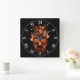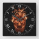 Orange Flaming Skull Square Roman Numerals Clock