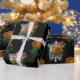 Orange Floral Skeleton Torsos on Black Wrapping Paper