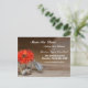 Save the Date postcard. Rustic wedding look you will enjoy with the bright orange flower in the glass Mason jar. The jar is filled partially with small rocks. The glass jar decoration sits on a rustic wooden table. Ideal for any season. Personalize this template with your information.