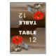 Fold the reception table number card manually following the line. Each card should have a new number, ordered separately. Do not consider the group order; order one card at a time. Enjoy the rustic wedding look with a bright orange flower in a glass Mason jar partially filled with small rocks, placed on a rustic wooden table. This decoration is ideal for any season. Personalize this template with the "Table" and "Number", and make further edits as needed.