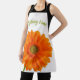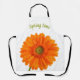 A colourful orange Gerbera Flower apron. The text and the image is customizable. There are additional products like paper plates, placemats and much more available.