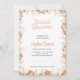 This invitation is more than just a piece of stationery; it's a visual celebration of love and the timeless allure of nature. The white backdrop, adorned with the intricate border of dainty orange flowers and greenery, invites guests into a world of contemporary charm and the promise of new beginnings. It sets the perfect tone for a bridal shower filled with laughter, cherished moments, and the anticipation of a beautiful journey together.