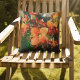 Orange flowers painted with a marbling effect. If you have potted flowers on your deck you may already be growing these so the pillow will match! I photographed these flowers from a pot on my deck but I don't know what they're called.