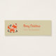 A charming christmas themed skinny business card with a retro flair. An illustration of a cute orange fox, wearing a red santa hat surrounded by christmas holly decorations. Text on the front says: a gift for you. On the back it says Merry Christmas and your personalized name.