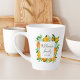 Sip in style with this botanical latte mug featuring orange fruits and flowers in a watercolor floral frame. A modern elegant summer gift with customizable calligraphy script! Perfect for housewarmings or summer weddings.