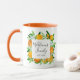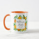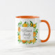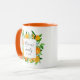 Sip in style with this botanical mug featuring orange fruits and flowers in a watercolor floral frame. A modern elegant summer gift with customizable calligraphy script! Perfect for housewarmings or summer weddings.