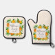 Brighten up your kitchen with this modern elegant oven mitt and pot holder set! Featuring a watercolor botanical design of orange fruits and flowers, it’s great for summer vibes. Customize the calligraphy script in the floral frame for a personal touch. A stylish citrus-inspired gift for weddings or housewarmings!