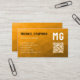 Orange geometric mesh pattern QR code Monogram Business Card