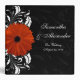 Tasteful, chic and classy matching collection features black background with subtle swirling scrolls, and a vivid white swirl foreground design with vibrant orange gerbera gerber daisy flower. Perfectly elegant for a fall or autumn wedding, halloween wedding, thanksgiving event or during any season.