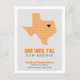 Let them know where you're going with this classy moving announcement. Features the state of Texas in a grid pattern with a heart you can move to show where your new house is. Backside features your message encouraging people to come see you. Comes in burnt orange, maroon, red, state flag blue, green, purple, orange, black and yellow - most based on state school colours. Matching products available.