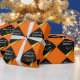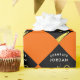 Creative graduation gift wrap and grad party decoration featuring black and gold graduation cap design pattern on orange background. Edit text to add graduate's name.