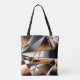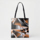 Shoulder Tote Bag and casual fun fashion statement accessory printed with Orange Gradient Colour Fill Mechanical Design perspective broken stained glass mosaic style drawing in orange, grey, black and white artwork design illustration by TheFabricSeal at Zazzle #ZazzleMade https://www.zazzle.com/store/thefabricseal