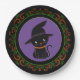 Orange Green Black Cat With A Witch Hat Halloween Paper Plate