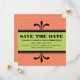 Elegant and sophisticated Fancy Art Deco Save the Date Announcement in nectarine orange and tender shoots green featuring an art deco flourish and dotted border and a two-toned colour scheme. This modern design is perfect for announcing a deco themed wedding. Easy to customize, simply add your wedding details in the text fields provided. Click "Customize It" to find additional personalization options.