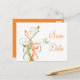 This orange, olive green, and white floral postcard matches the wedding invitation shown below. All the text is customizable. If there are any other matching items you require, please email your request to niteowlstudio@gmail.com.