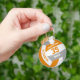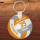 This sporty volleyball themed keychain for girls or boys features a realistic looking orange, grey and white volleyball upon which you can customize the player's name & jersey number plus school or club name and mascot name in a varsity letter style font - by katz_d_zynes