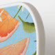 Tossed oranges, leaves and orange blossoms on a cool blue background