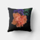 Orange Hibiscus Flower Dramatic Black Throw Pillow