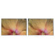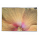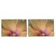 The original photograph by MaeFlowers on this Pillowcase Set is a closeup of an orange hibiscus flower. The flower petals are a yellow orange colour, turning pink into deep red at the flower's centre. We can see the details of nature's pollen system, soft red dots and tiny yellow florets. The veins in the petals can be seen spreading outward their ruffled edges. A bit of leafy green background sets off the ruffles.