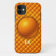 Juicy orange illustration on orange patterned background with customizable initials or name.
