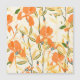 Seamless Vintage floral pattern. Arrangement orange iris flowers by delicately yellow leaves on a light cream colour background. Hand-drawn illustration. Square repeating pattern for fabric
