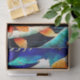 This tissue paper features orange Koi fish swirling around in a huge wave with splashing seafoam, inspired by the The Great Wave off Kanagawa by the Japanese artist Hokusa . The fish are trying to swim upstream against huge foamy waves of turquoise aqua blue, deep orange, navy, black, and cream. Golden flowers decorate the bottom corner of this Asian inspired tissue paper. Painterly effects, similar to watercolor, have been added to this image. This paper would work nicely for decoupage furniture or craft projects, as well as make a nice accent or gifts and retail shopping bags.