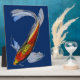 A simple zen Feng Shui watercolour painting by artist Sacha Grossel of an orange Japanese Koi carp fish swimming downstream on a customisable background. This simple koi design is artistic and would suit any home or office with an oriental or Asian or Japanese art theme