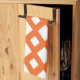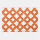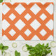 A bold, geometric pattern of large and small white diamonds on an orange background. The vibrant orange forms a lattice which separates the white diamond shapes.