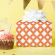 A bold, geometric pattern of large and small white diamonds on an orange background. The vibrant orange forms a lattice which separates the white diamond shapes.
