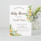 Cute elephant baby shower invitations with orange, flowers and leaves. These baby shower invitations are easily customized for your event by simply adding your event details.