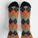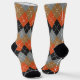 Argyle is trending. Orange Light Grey Tan Off Black Argyle with white stitching. The argyle pattern has long been recognized as a classic design that has stood the test of time. The repeated diamond-shaped pattern evokes a sense of sophistication and elegance, adding a touch of refinement to attire and accessories. Eclectic Grandpa and Jazz Revival are looks both trending and argyle fits perfectly into that fashion trend.