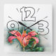 orange lily square wall clock