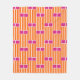 This medium fleece blanket has a mid-century modern design of orange vertical lines with pink rectangles above, repeated over the design.