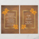 Orange maple leaves on brown stained grunge paper rustic folded booklet wedding ceremony and party program featuring a gold frame on brown background and orange maple leaves on the corners. This elegant modern fall wedding design with a vintage flair is part of a wedding set or collection and is a totally customizable template perfect for an autumn wedding. You will have to fold in the centre to have a folded program. Choose only the value paper type as it folds well.
