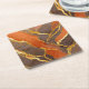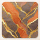 Orange Marble Pattern with Gold Square Paper Coaster
