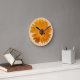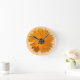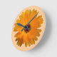 This awesome clock features a photo of a beautiful orange marigold flower with a dark centre. The background is a beautiful pale orange colour.