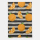 This design features a textured Black and white stripe background with whole and sliced Oranges cascading in the foreground. Jazz up any home with these trendy fruit and vegetable designs!!