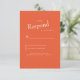 Orange Wedding RSVP Response Card. Dinner & Dancing. Modern font. Combo font. White text.