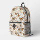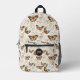 There's a flock of orange Monarch butterflies flying around on this pretty backpack. Along with the butterfly images are grey and orange floral and leaf designs. Your monogram is on a black circle banner on the pocket, and everything is placed on a white background.