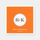 This simple and modern wedding napkin features a white circle with the monogram of the bride and groom on a orange background. Customizable text, near the bottom, features the names of the bride and groom and their wedding date.