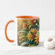 Introducing a striking orange mug adorned with a captivating painting of flowers glowing in radiant yellow and green hues. The vibrant orange backdrop enhances the luminous flowers, creating a warm and energizing contrast that brightens up any moment. Each petal and leaf appears to glow with life, offering a perfect blend of art and functionality. This mug is an ideal choice for anyone who appreciates bold colours and floral designs, making it a delightful addition to your collection or a thoughtful gift for a friend. Enjoy your favourite beverage in style with this unique and eye-catching piece.