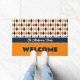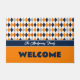 Oversized elegant argyle pattern in school colours of dark green and bright yellow set the backdrop for this design. Welcome in large letters and your family name included. Great idea for a house-warming! Design comes in maroon and grey, burnt orange and grey, red and black, green and black, orange and navy, green and yellow, and purple and grey. Matching products available.