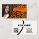 Orange Numbers on Black Custom Photo QR Code Business Card