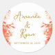 Orange Oleander Flowers Floral Script Wedding Classic Round Sticker. Beautiful orange oleander flowers and trendy script. Add bride and groom's names and the wedding date.
